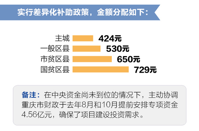 ??? 三是脱贫为先,不等不靠,科学确定差异化补助标准。为确保水利脱贫攻坚任务圆满完成,重庆市政府决定,市级以上补助实行差异化政策,具体情况如下图: