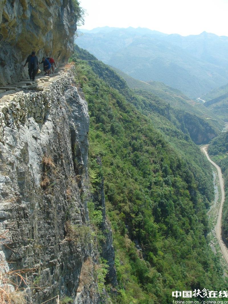 第二十七届中国新闻奖摄影奖获奖图片 潘凌峰 摄 修渠难,物资运输难,聚拢人心更难。不通路,水泥、石粉靠人背马驮运上工地;没有后勤保障,包谷沙搭配酸菜冷洋芋一天只吃两顿,可人心聚不齐,这渠不知要修到何年何月? “党员思想落后,群众就不齐心,我们怎么对得起共产党员这个称号?”每月初,黄大发都要在晚上召集村里20个党员开会,号召党员冲锋在前。 过年了,大家都想过个闲年,却看到黄大发带着一家老小又上了山。鞋磨破了没钱买,黄大发赤脚步行二十多公里去背炸药,脚板磨破皮,双脚血淋淋的,管仓库的工作人员想要资助他买双鞋穿上,他却婉拒了。 春去冬来,餐风露宿,三年时间,草王坝人勒紧裤腰带,用双手硬生生凿出了绝壁引水的奇迹:一条跨3个村,十余个村民组,主渠长7200米,支渠长2200米的大渠终于竣工。 1995年端午节,当汩汩清流从沟渠一泻而下时,草王坝全村老少扛着锄头一路呼啸奔向自家的旱地引渠蓄水,把祖祖辈辈刨食的旱地变为稻田。 半坎组49岁的徐开伦和黄大发跪在地里热泪纵横,年年岁岁的盼哟,终于圆梦了。这年春节,村里家家户户把平日里舍不得吃的新米煮上一大锅“敞开干”,徐开伦一口气干了五大碗。 水通了,黄大发又带领群众开展“坡改梯”,稻田从240亩增至720亩……乡亲们亲切地把这条渠称为“大发渠”。 群峰壁立,流水淙淙;山风拂面,壮志有声。回望那些令人心潮澎湃的修渠故事,找寻“年份英雄”那些光芒闪耀的信仰足迹,就是为了在新的历史阶段,探寻和汲取不竭的动力源泉。