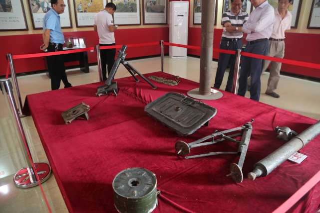 由重点老区村建设项目资金修建的高平村革命纪念馆内摆放着抗战时期高平村自制的武器