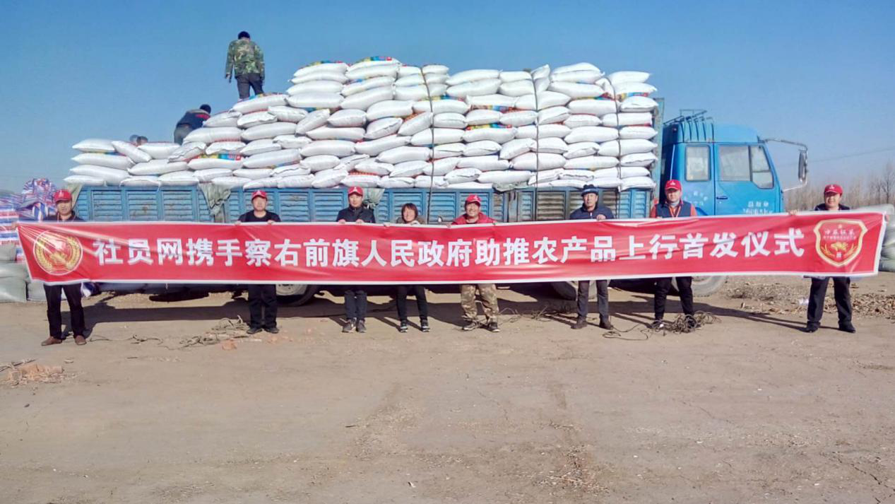 社员网依托供销体系的线下优势和互联网信息线上优势,为解决察右前旗农民卖货问题,通过农产品大宗批发市场对接、农产品渠道直供、农产品互联网直销相结合的方式开展的农产品上行业务,在短短的一个月内实现上行葵花子、萝卜、红豆、鸡蛋等农产品总计2,383,921斤,交易总金额 9,962,718元,有效的推动察右前旗农村电子商务发展,带动当地农户脱贫致富。